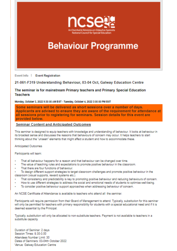 FACE-To-FACE: NCSE - UNDERSTANDING BEHAVIOUR